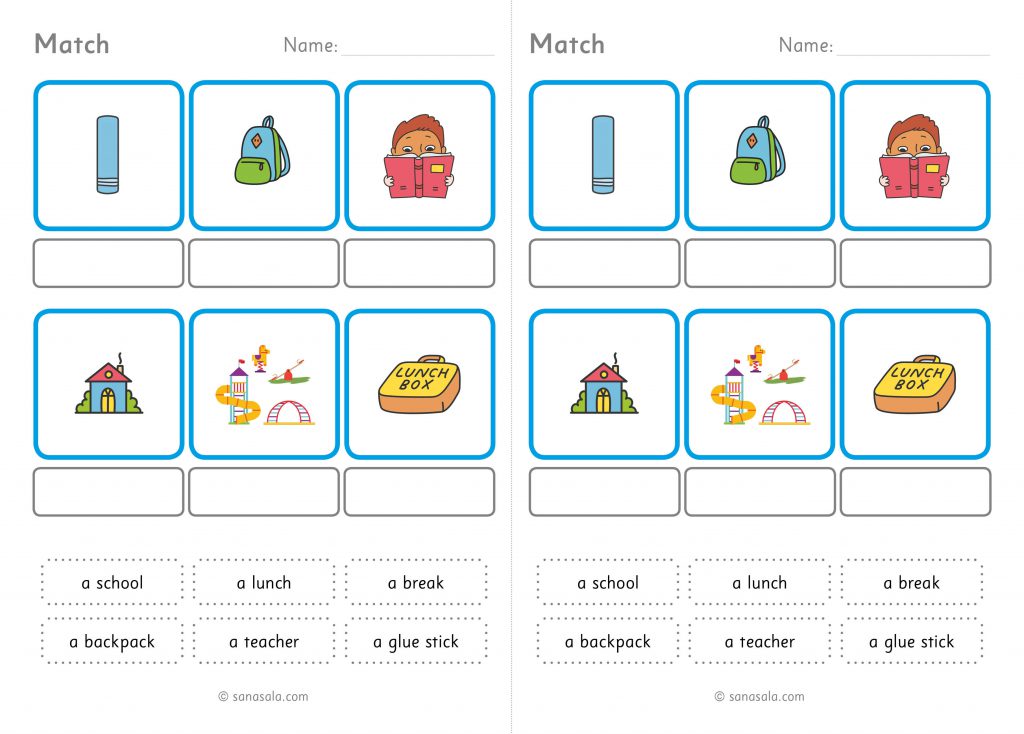 Children love to use scissors. Let them practice their fine motor skills while learning new words. This activity is a simple , yet fun way to engage your students to practise the vocabulary. If you laminate the worksheet, your students can use it over and over again.