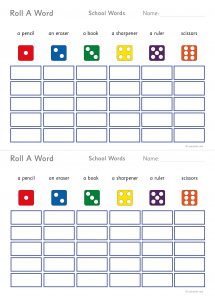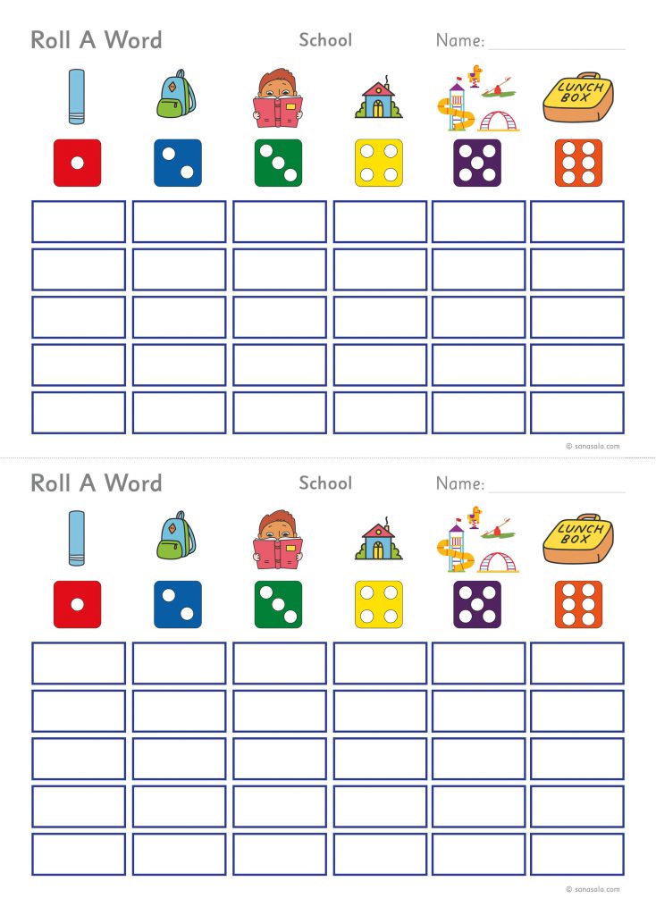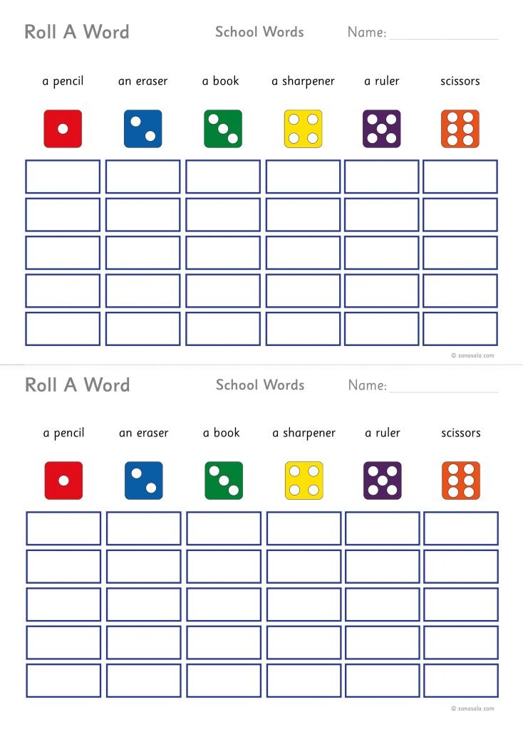 Can be played alone, in pairs or with the whole class by using one giant or virtual die. Includes four different levels: 6 words, 12 words, images only or words only.